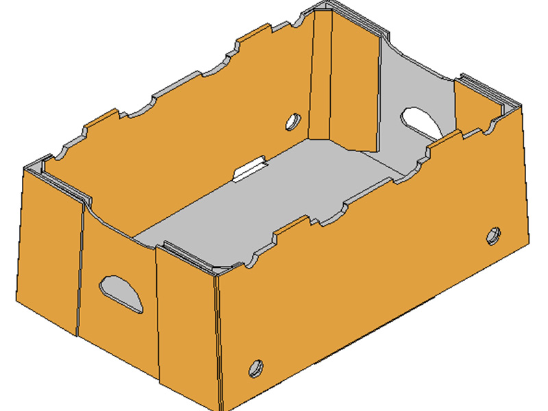 - 盒型: P84箱型是比較典型的開口箱之一,結(jié)構(gòu)強(qiáng)度好,成本適中,廣泛的應(yīng)用于農(nóng)產(chǎn)品的果蔬包裝中。