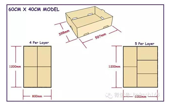 國(guó)外農(nóng)產(chǎn)品損耗很低,在很大程度上跟包裝和物流形式有關(guān)。開(kāi)口箱在物流過(guò)程中,有利于冷藏車(chē)?yán)錃庑?,有利果蔬呼吸產(chǎn)生的熱量的散發(fā),減少果蔬本身呼吸產(chǎn)生乙烯造成催熟效應(yīng)等。因此國(guó)外大部分果蔬包裝外箱,多采用開(kāi)口箱結(jié)構(gòu)。